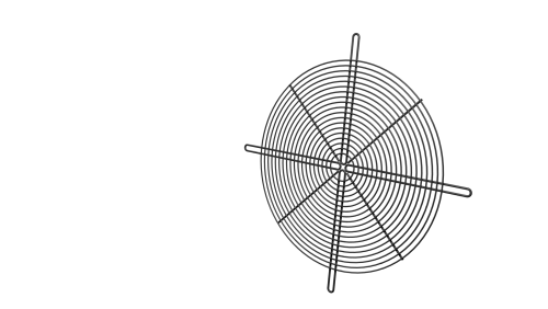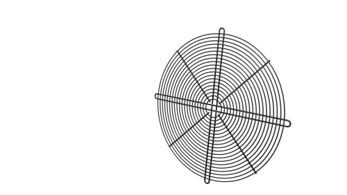 Le griglie piane di protezione sono atte a proteggere l’operatore durante il funzionamento della ventola. Le griglie piane a supporto motore, oltre a proteggere l’operatore durante il funzionamento della ventola, fungono anche da supporto per il motore stesso.